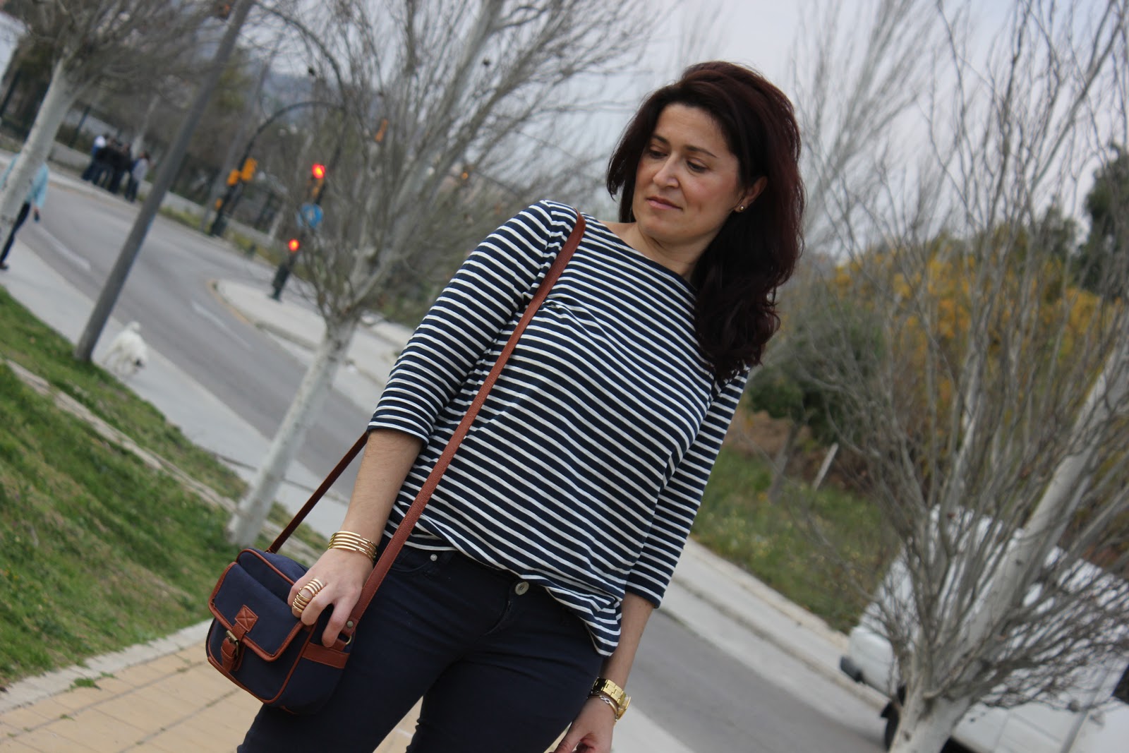 Otro de los básicos que no pasa de moda temporada tras temporada son las rayas marineras, en esta ocasión he elegido las rayas en azul marino y la he combinado con rojo, me encanta el color de el trench que le da alegría a cualquier look. El estampado marinero tiene multitud de combinaciones con multitud de colores y esta temporada sigue estando de moda.