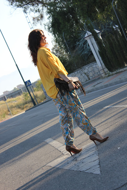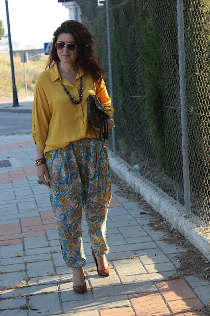 Para mi los pantalones pijama me parecen de lo más cómodo que hay, además de bonitos y fresquitos. Y estos me encantan por su estampado tan alegre y de colores llamativos. Yo los combine con esta camisa amarilla y con los accesorios en tonos marrones y la verdad que me gusta mucho el resultado.