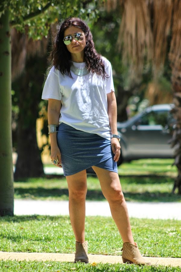 Hola a todos!! Llega el buen tiempo y estos looks son perfectos para ir cómoda y fresquita, además con básicos de nuestro armario. Nada mejor que una camiseta básica, esta es de la sección de hombre, la verdad que la prefiero porque son más anchas y es así como más me gustan, y una mini de punto, y la mejor compra que he hecho son estos botines, no puedo estar más contenta con ellos, les he dado mucho uso y no quiero guardarlos. Los complementos dan el toque perfecto a este look casual.