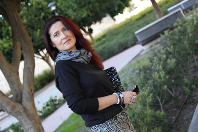 Jersey: Primark; Falda: Lefties; Zapatos: Primark; Clutch: Zara; Pañuelo: Primark